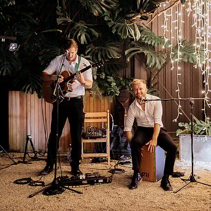and sang what they thought would work best - they ABSOLUTELY NAILED IT. I have to confess we got slightly cold feet in the lead up to the wedding because Sam and James’ demo clips show that they are quite country focussed and we also weren’t sure whether it would be better to go with a DJ so people could dance to the original versions of the songs. HOWEVER thank god we didn’t change - those demos do not do them any justice at all. They sang a huge variety of songs, not just country, and their voices are incredible. They can do it all - they played during our ceremony while we signed the paperwork, after our ceremony during a cocktail hour and then for hours with a cranking dancefloor. They looked like they had lots of fun and wanted to be there, which made everyone feel really good. If you can’t tell already… do not hesitate to book these guys!! Thanks Jan, Sam and James for giving us the night of our lives!"