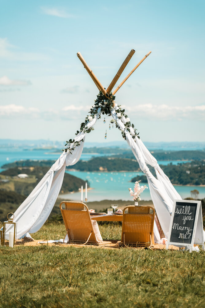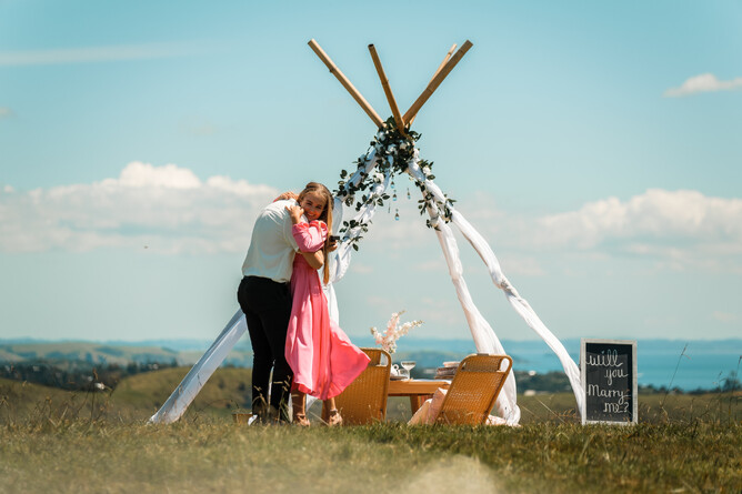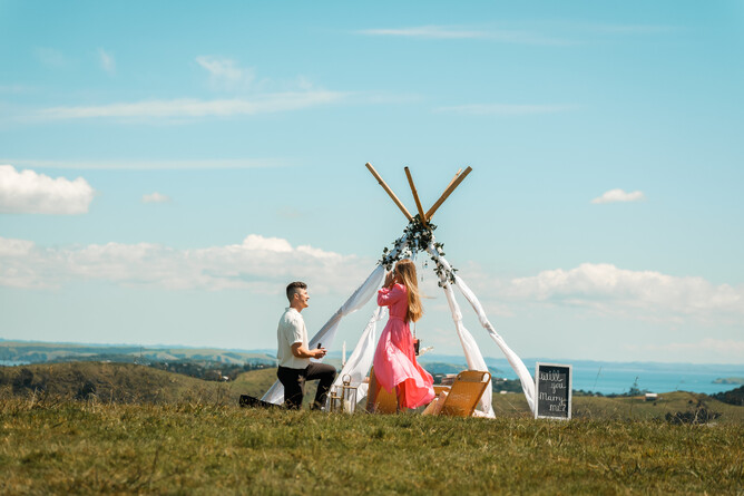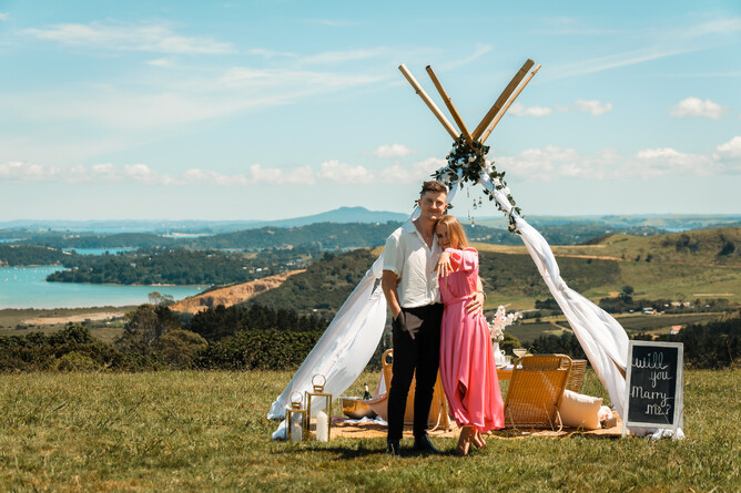 Liam contacted us to figure out his options for proposing to his beautiful partner Erin on Waiheke Island. Together, we worked out the perfect location and which package would best suit his needs. Everything was set, but Liam was so excited to ask Erin to be his fiancee that he asked to bring the date forward; "no problem" we said! We firmed up the new date with our favourite photographer and started planning every detail.
