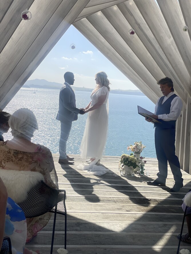 Waiheke is world renowned for beautiful and memorable weddings so after researching the many venues, ( vineyards, beaches, clifftops, private estates and homes) with the suitability for the wedding party, approximate guests numbers and budget in mind, the next task is to select the celebrant early to ensure availability and to choose the ‘right fit’ as every celebrant is as unique as each couple, which is clearly ascertained from an initial interview.