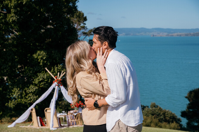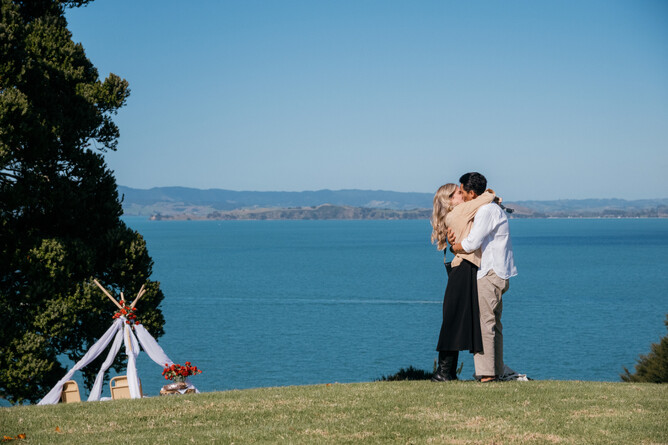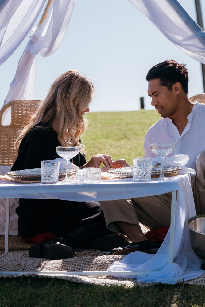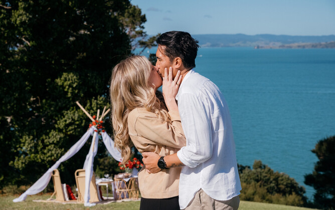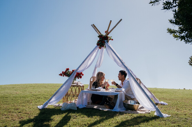 Jean planned a surprise New Zealand getaway for his lovely partner, Chelita. He booked a weekend stay at the Omana Luxury Villa accommodation with views to die for and got in touch with us to organise a picnic set up as the backdrop for their special moment.
