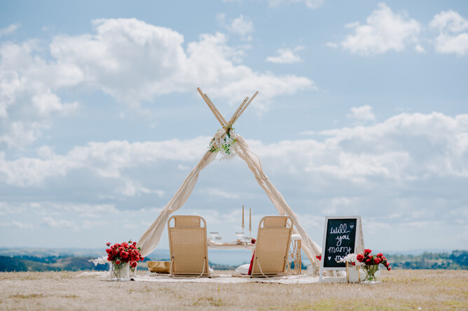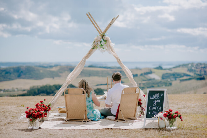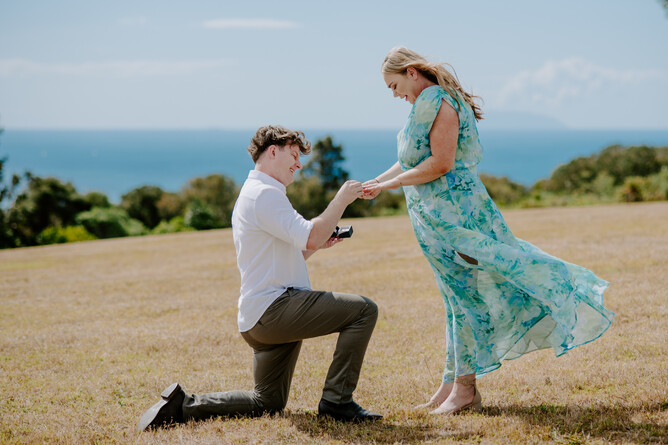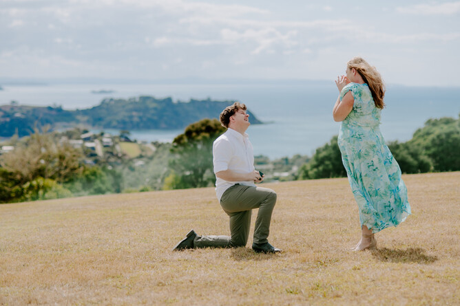 Stanley whisked Karla off to the charming Waiheke Island, which is home to his childhood memories and provided the perfect backdrop for his heartfelt proposal. The island's stunning landscape matched the significance of the moment, creating an unforgettable scene filled with love and joy!