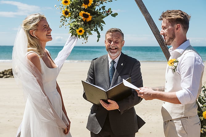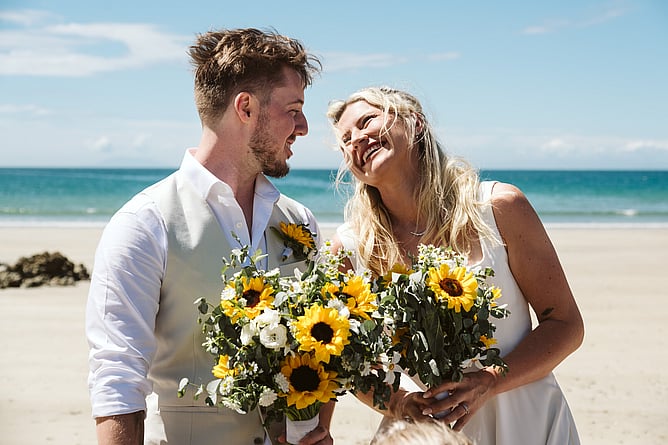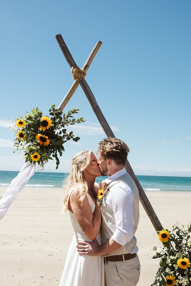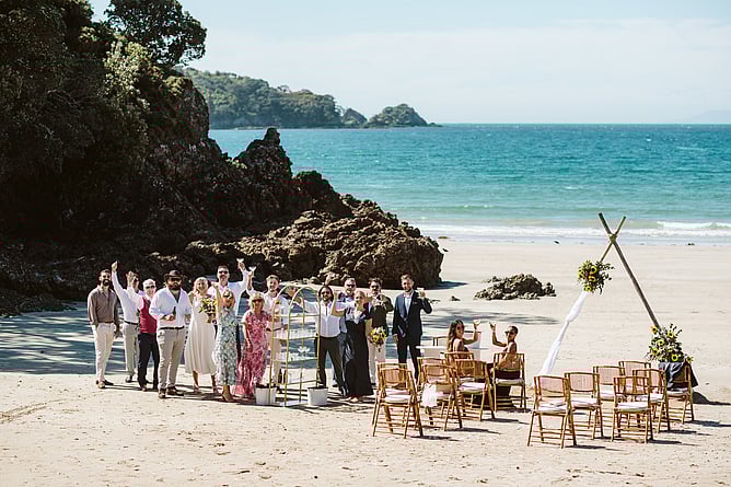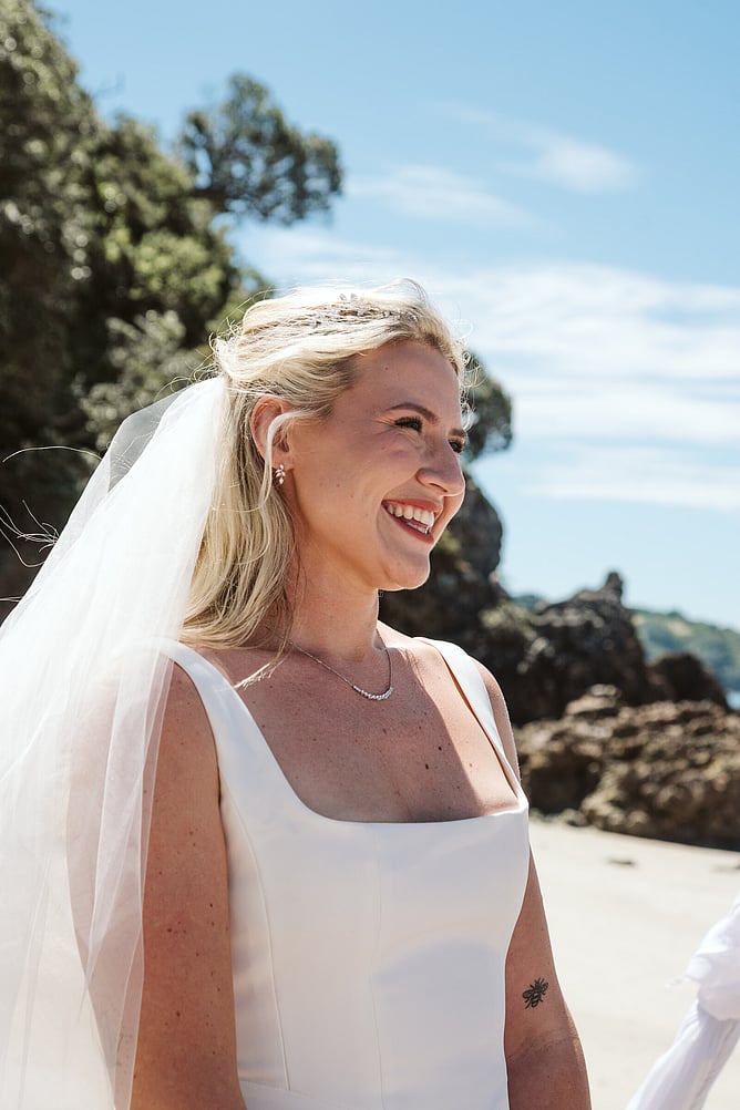 Summer vibes surrounded Kiera and Daniel’s intimate wedding on Oneroa Beach, Waiheke Island. Their relaxed beach ceremony was the perfect setting to celebrate their love, and Kiera’s bright smile said everything!