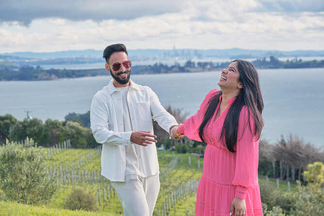 After a relaxed lunch with friends, Sabi leads Aman for a walk to "check out the views" and of course they just so happen to stumble across the setting that we had created for them at the Olive Cottage that he had rented.