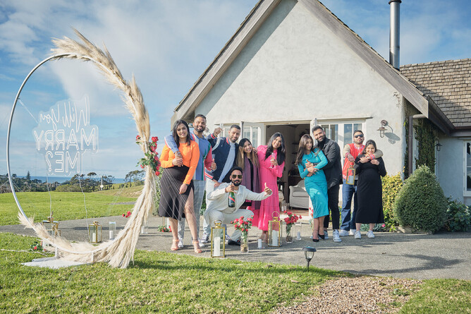Sabi had disguised the plans to be an innocent weekend lunch at Mudbrick Vineyard with family and friends, little did his girlfriend know that he had meticulously planned every detail of the day to surprise her.