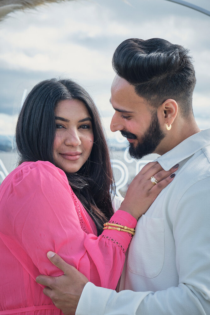 Dressed in a gorgeous shade of pink, Aman was met with city and ocean views, her lover down on one knee, and of course... that ring!! Speechless and overjoyed, Aman said yes to Sabi's proposal!