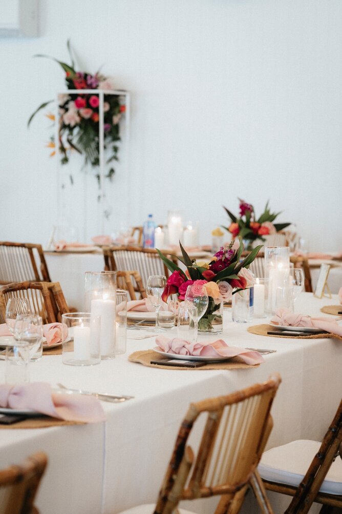 Bianka and Rob approached us to style their wedding a few months before their confirmed date with a clear vision of their tropical wedding dream. With a Fijian background, they wanted us to style the space to feel lush, understated with a touch of their homeland.