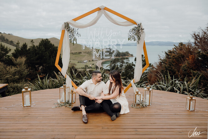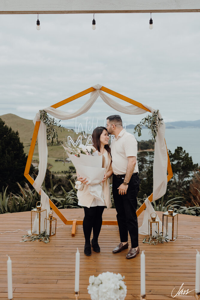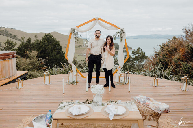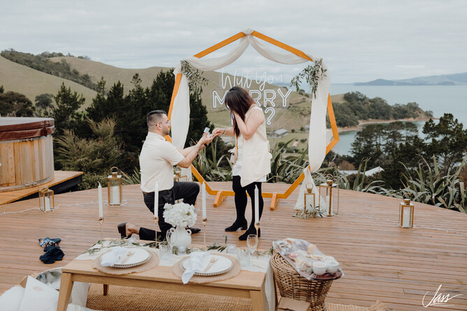 Proposal planner + hire: Indigo Waiheke | Photography + videography: Jass Photographics | Flowers: The Bloomerie | Venue: Woodside Bay Chalet
