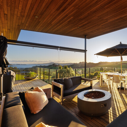 Two Bedroom Lodge This modern property has spectacular views overlooking Church Bay back to Auckland City with views across the Hauraki Gulf and Rangitoto.